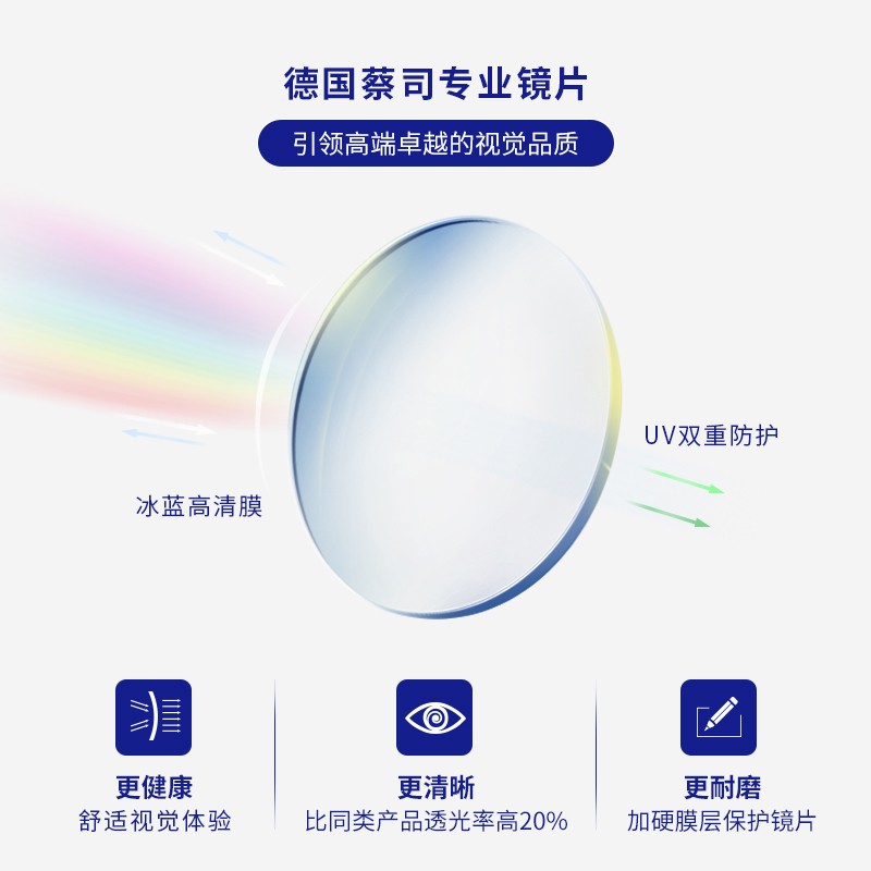 德国蔡司成立于1846年,是著名的的镜片生产商之一。这款ZEISS 蔡司佳锐系列 1.61折射率单光镜片,蔡司佳锐系列比入门A系列高一个等级,蓝色减反射膜,更加不易察觉,容易保养,清晰视觉,美观外型,可配近视0-600度,散光0-200度。适合大部分中低度近视患者,能有效抵御电脑手机蓝光对眼睛的伤害。