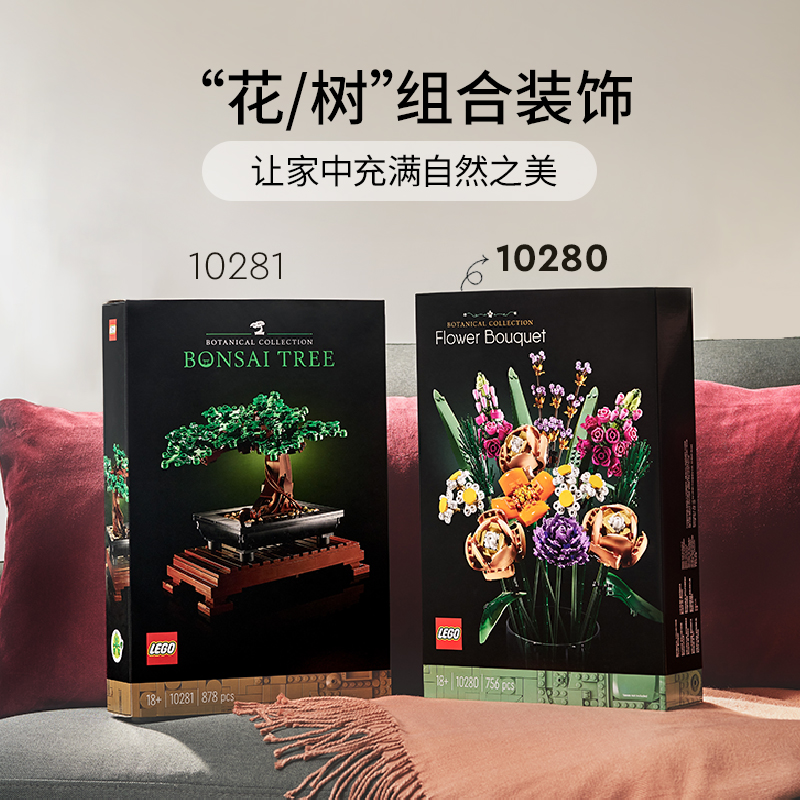这款花束产品属于乐高新增的植物收藏系列积木套组,整个套组包含 756 个积木颗粒,2021年首发,产品定位18+人群,花束由12个花束组成,其中的10个花径是带有鲜艳的花朵,以及4个灌木丛元素。拼装完成后包含三朵玫瑰、三朵玫瑰,两朵金鱼草,一朵薰衣草、一朵紫菀、两朵雏菊和一朵罂粟花。套装还包括三片没有名字的叶子和两个茂盛的小树枝,用来丰富我们的花束。花束整体配色丰富,亮点是增加了乐高色系中最新的土绿色。不过由于这个套组没有提供支撑结构积木配件,所以想要摆放起来需要自备一直好看的花瓶。