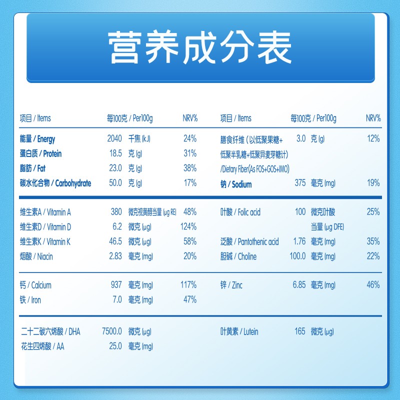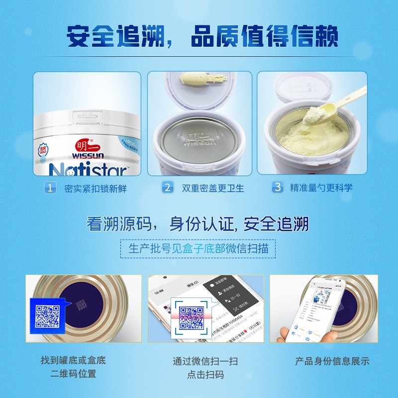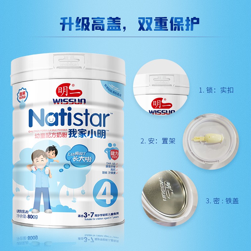 明一(wissun)这款配方奶粉,富含多种营养成分,可满足孩子生长所需营养。其中DHA和ARA+胆碱,有助于脑部和视网膜发育与功能的维持,提高思维和记忆力;α-乳白蛋白有助于调节睡眠、食欲和情绪;叶黄素可增进和保护视力。