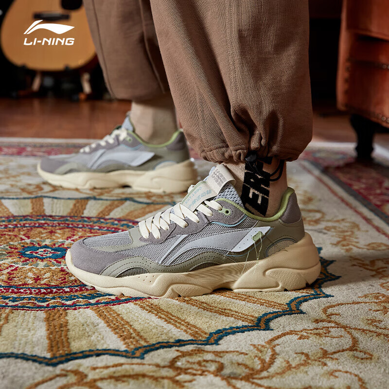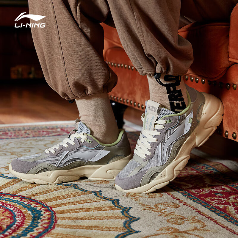 LI-NING 李宁 AGCR165 男子休闲运动鞋,多材质拼接设计,致敬复古,体现律动青春,层次丰富,舒适包裹,释放脚面束缚。