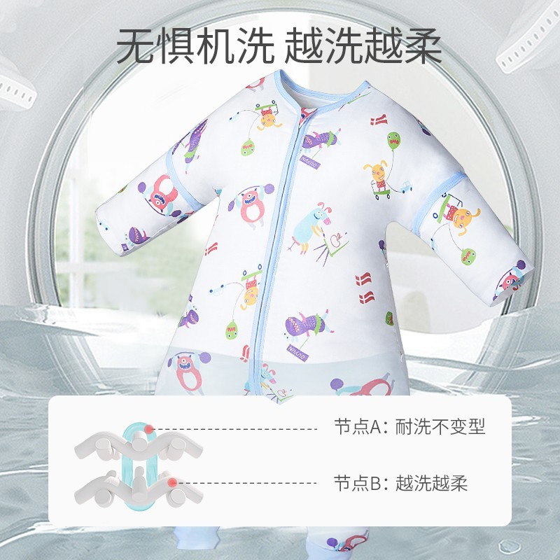 恒温睡袋防踢被,甄选新疆长绒棉,21道工艺悉心纺织,只为柔软,结合草本抗菌材料,给予宝宝安全健康,动态调温科技,持续保持适宜温度,不冷不热,分腿设计,宝宝可自如活动无束缚,袖子可拆卸,应对不同温度变化,曲拉链加按扣,方便更换尿裤。