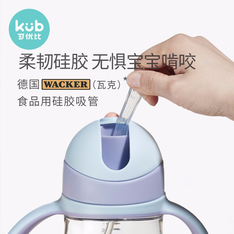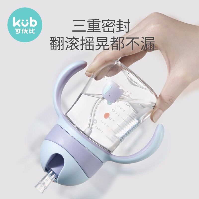 kub 可优比这款宝宝学饮杯,超乎想象的好吸,模仿奶嘴50硬度值,柔韧好吸。单向进气口,平衡瓶内气压,只进气不漏水,宝贝轻松喝水。省力设计,V型吸管,咬吸出水,轻咬即开,保护宝宝牙龈健康。