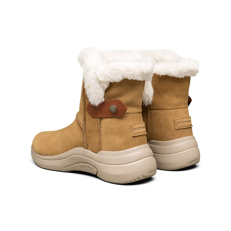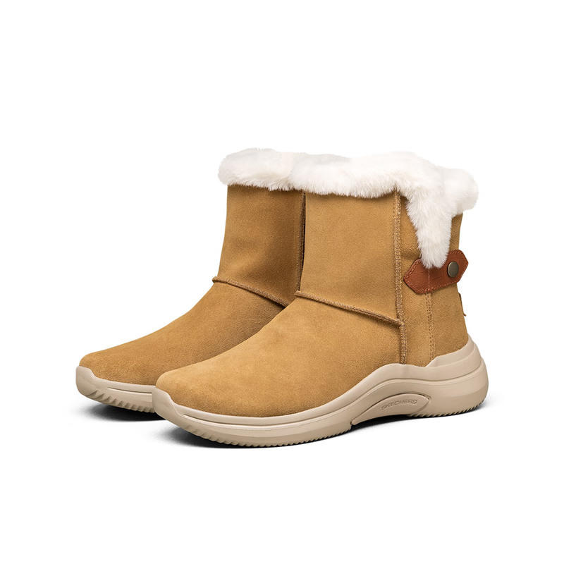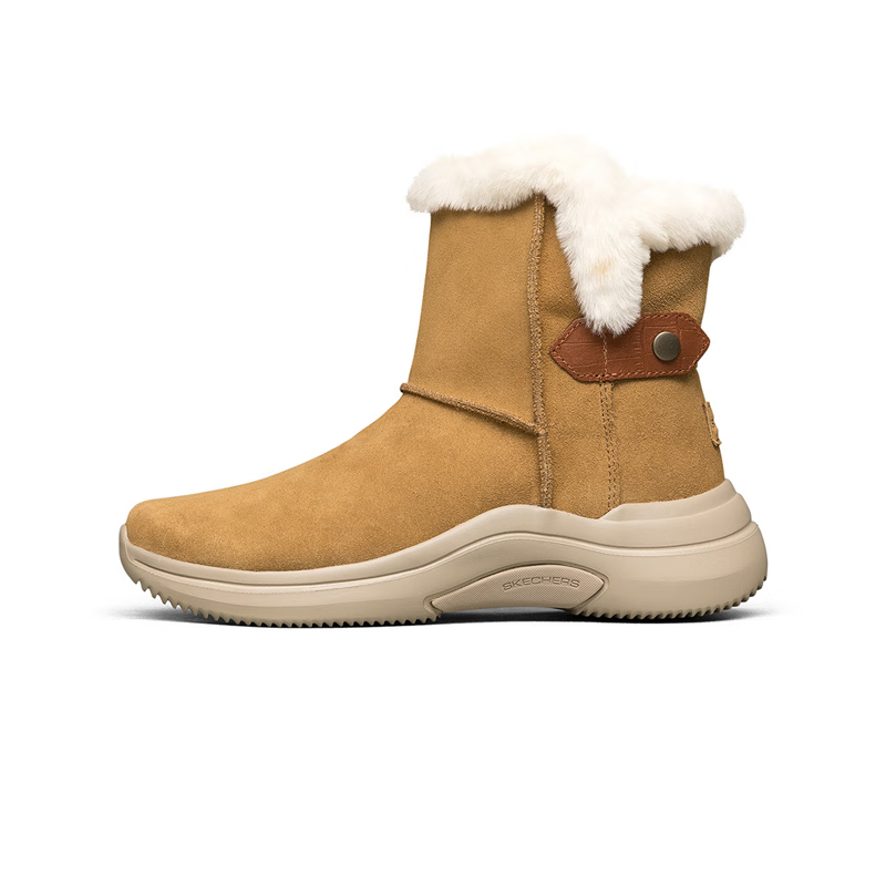 Skechers/斯凯奇冬季女子运动保暖加绒靴子,女士一脚蹬中帮靴,经典雪地靴设计,易于搭配,鞋领口绒毛,提升双脚御寒效果,一脚蹬穿着方式,便于穿脱。