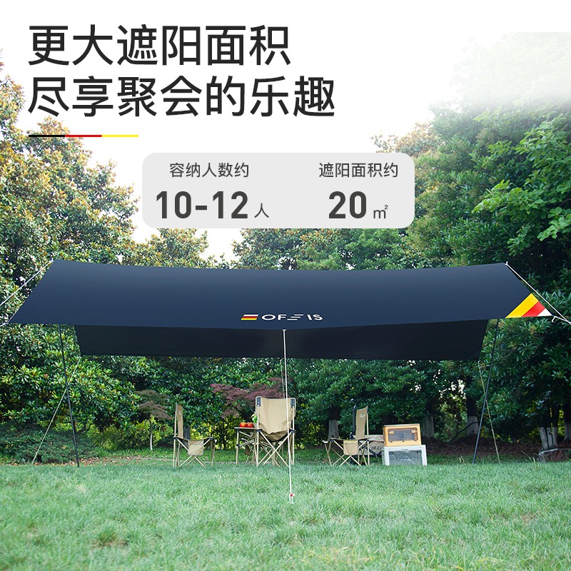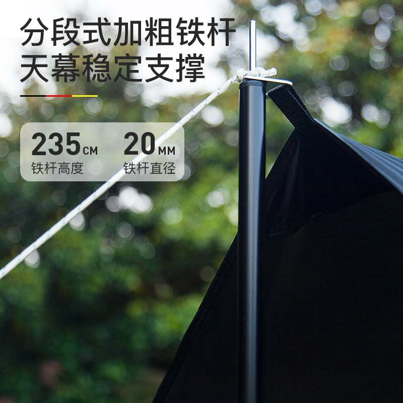 UPF50+,防晒涂银,不惧烈日。韧实涤纶布,防雨防水,适应多变天气。加大面积,可容纳更多人,畅享户外阴凉。3节连贯式,高度足够,稳固支撑。
