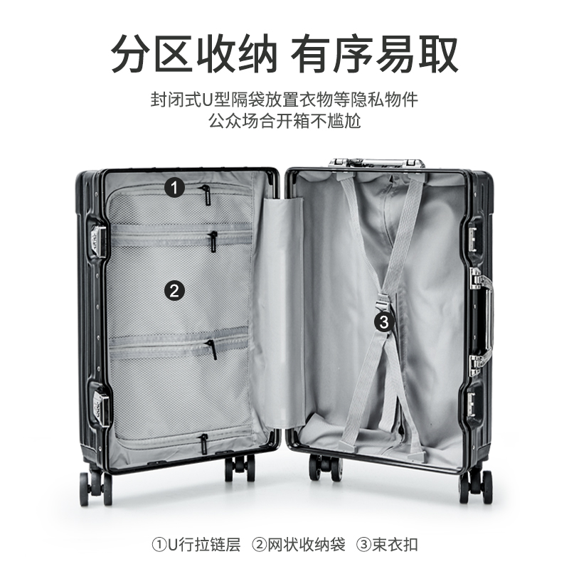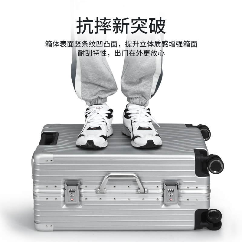 这款拉杆箱采用ABS+PC原料制成,抗压耐摔。外观时尚经典,360度静音万向轮,拉起来无声无息,坑洼路面也可优雅走过。防盗密码锁,经久耐摔,内部多层分区,合理放置物品。出差旅行必备,加强拉杆,拉动更顺畅,凭借时尚外观,亲民价格,过硬质量。