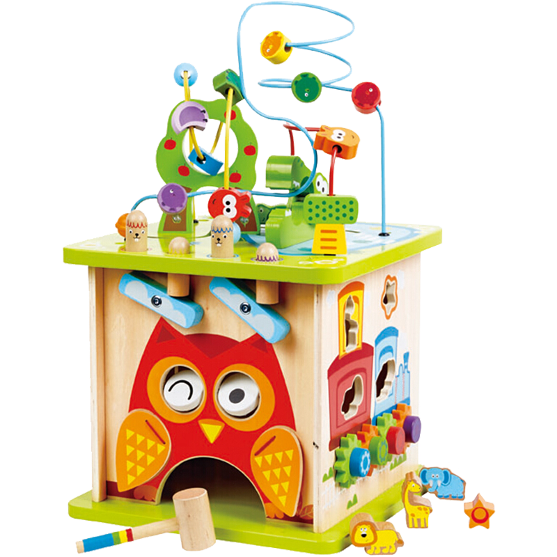 Hape E8341 森林动物游戏盒严选俄罗斯进口夹板,质地紧密坚硬,再搭配可啃咬的环保水性漆,每一块积木配件严格遵守3CM宝宝喉咙临界点标准尺寸设计,从根源杜绝吞咽风险。多种趣味玩法全面锻炼宝宝能力,奇特齿轮火车有利于培养宝宝的逻辑思维能力、滑块积木迷宫的移动玩法强化宝宝的抓握能力、趣味打地鼠玩法能够促进孩子肢体肌肉锻炼力、大颗粒情景绕珠的造型美学与趣味游戏帮助提升孩子手指的灵活及对空间的感知力、缤纷动物造型培养宝宝感官认知力。