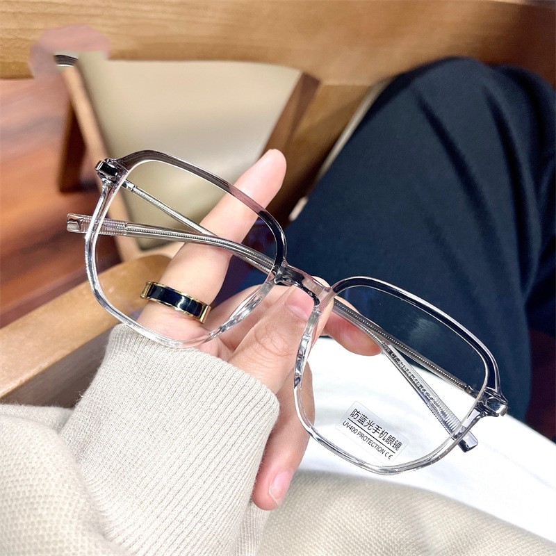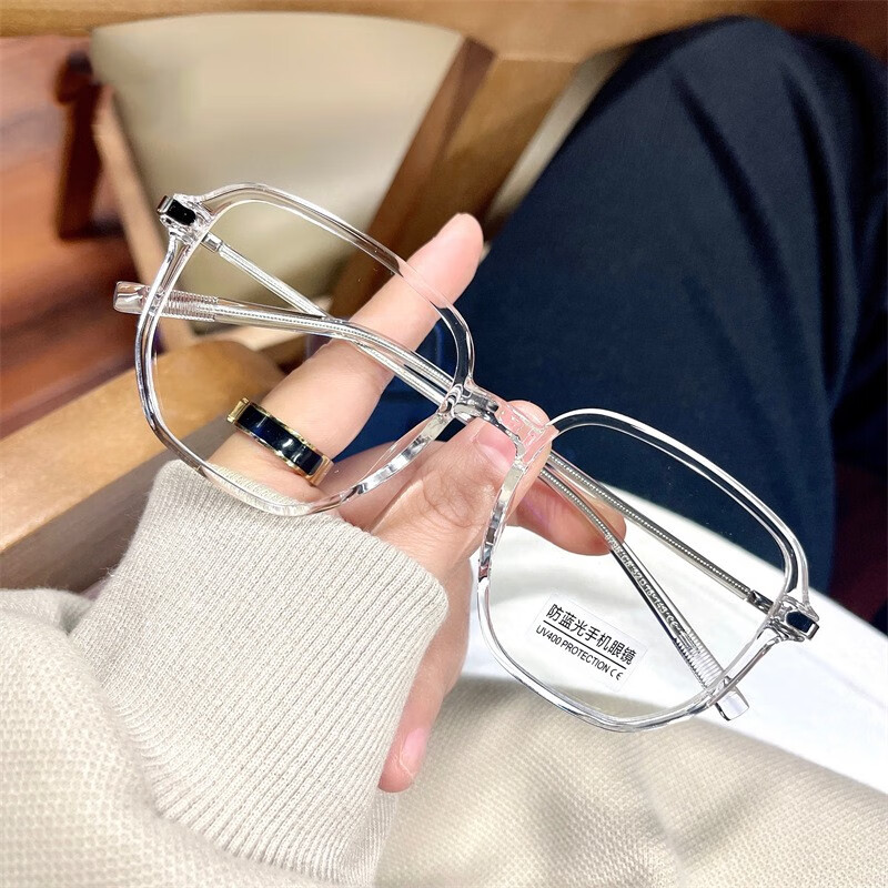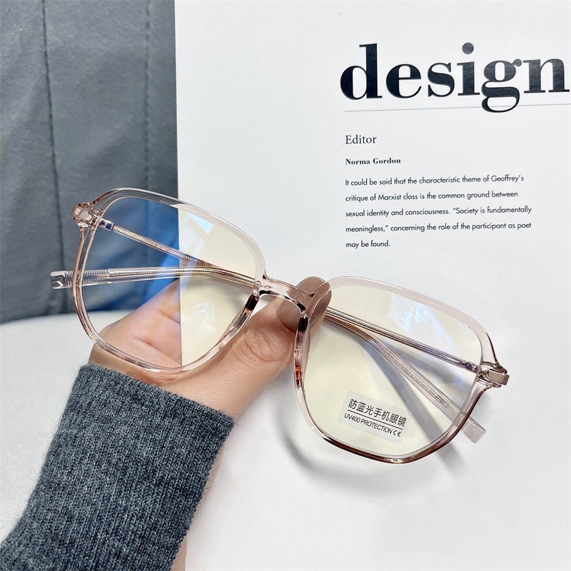 一款颜值很高的大方框镜架,超轻tr90记忆材质,重量很轻,佩戴无压力。非常推荐这个奶茶色系的配色,炎炎夏日让你想到了冰冰凉凉的奶茶,非常温暖可爱的减龄的色系,喜欢的朋友不要错过了,大方框设计,各路网红佩戴同款,配变色镜防蓝光都是不错的选择,大框框型很好的遮瑕瘦脸,超轻的镜架,重量11g左右,佩戴无负担,多个颜色可以选择,高级感慢慢。值得推荐。