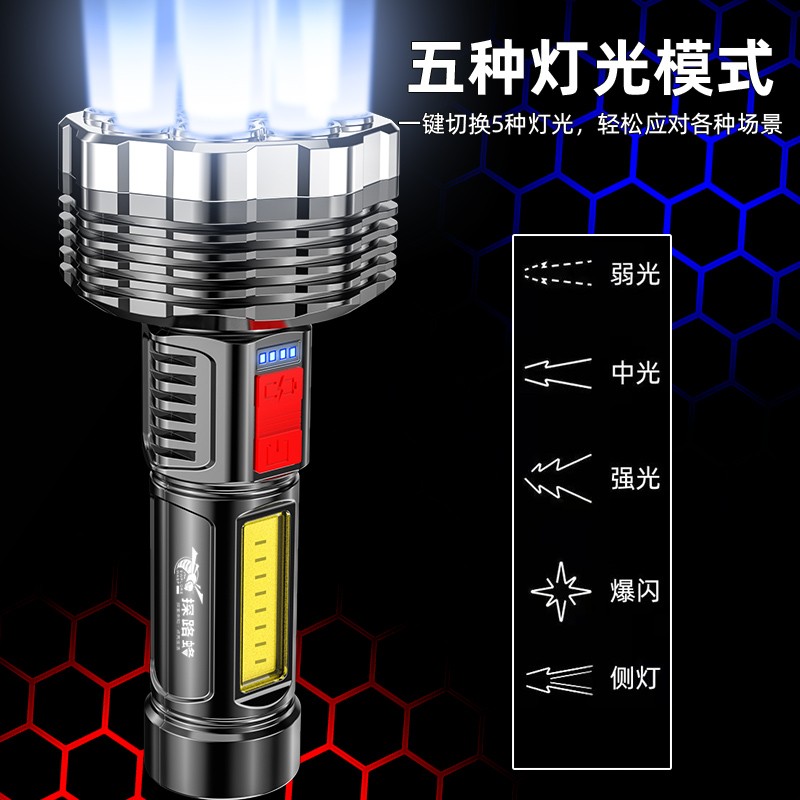 EWPLIRE WASP 探路蜂 十核豪华版 智能手电筒,九倍增亮强劲功率,搭载九颗P900灯芯,高亮灯珠亮如白昼;聚能光東可达上千流明,强光模式有效射程384米。一键切换5种灯光,轻松应对各种场景。大光斑大范围照明,户处探险作业一清二楚。兼容多种设备充电,2~3小时即可充满。全身一体式设计,强效防水可消除对个方向喷射流水的有害影响,抵御户外意外状况。