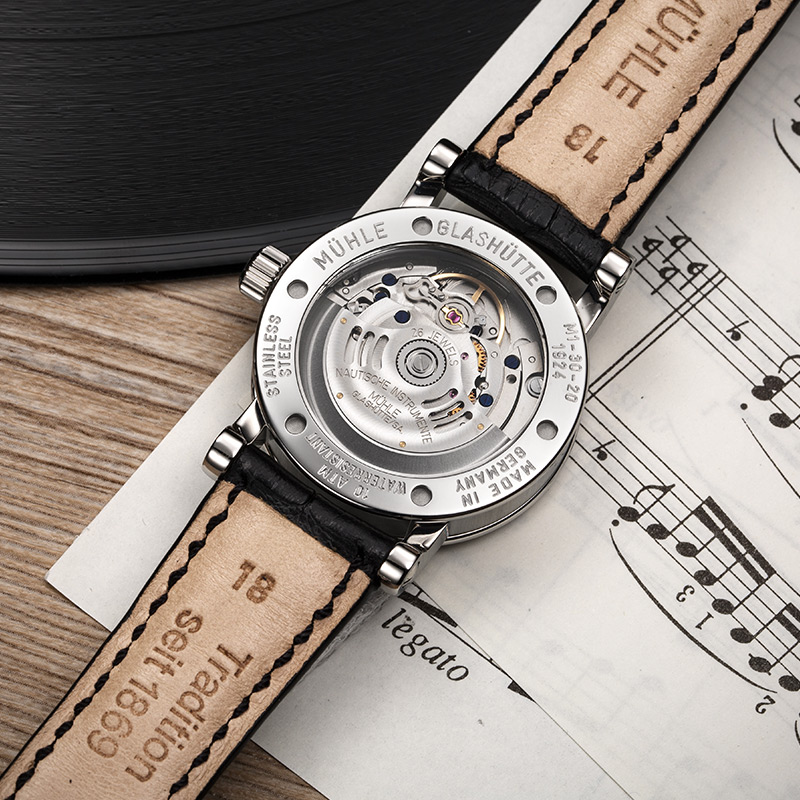 Muehle·Glashuette 格拉苏蒂·莫勒 男士机械腕表 M1-30-25-LB,防水100M,圆形表盘,透底表底,黑白配色,适合穿着正装,简约商务。
