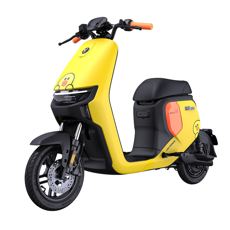 车辆支持绑定APP,随时随地掌握车辆状况,更有专属联名款界面,享受LINE FRIENDS全天候的陪伴。光感烤漆mix真彩PP材质,大胆混搭,强大与温柔并存。光感大灯+前后转向灯+一体式尾灯,完备灯光系统,为你照亮光明前程。宽体式皮革坐垫,质感高级,坐感舒适。搭载全新自研RideyLONG续航增强系统,续航强上加强。九号自研高性能无刷电机与定制长续航轮胎、控制器,三者协调配合可实现续航有效提升20%+。超强锂电,元气满满,超强续航,高能更全能。上班通勤、买菜接娃、周边兜风,各种日常生活场景,一车搞定。
