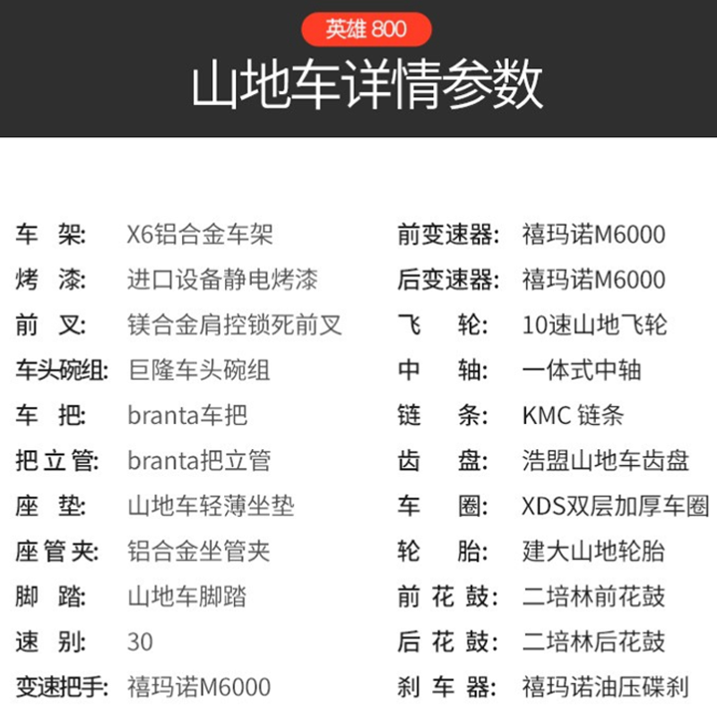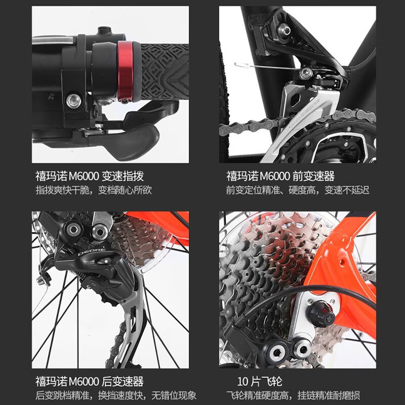 喜德盛联合中南大学共同研发的X6航空级铝材,平焊补土+DB抽管技术,用于车架让整车变得更轻,骑行更省力;M6000专业变速系统,变速爽快干脆,换挡随心所欲精准;禧玛诺MT200,减少刹车前行惯性,给骑行带来安全与快感;可锁死改变前叉的硬度来适应更多的路况提高骑行效率。