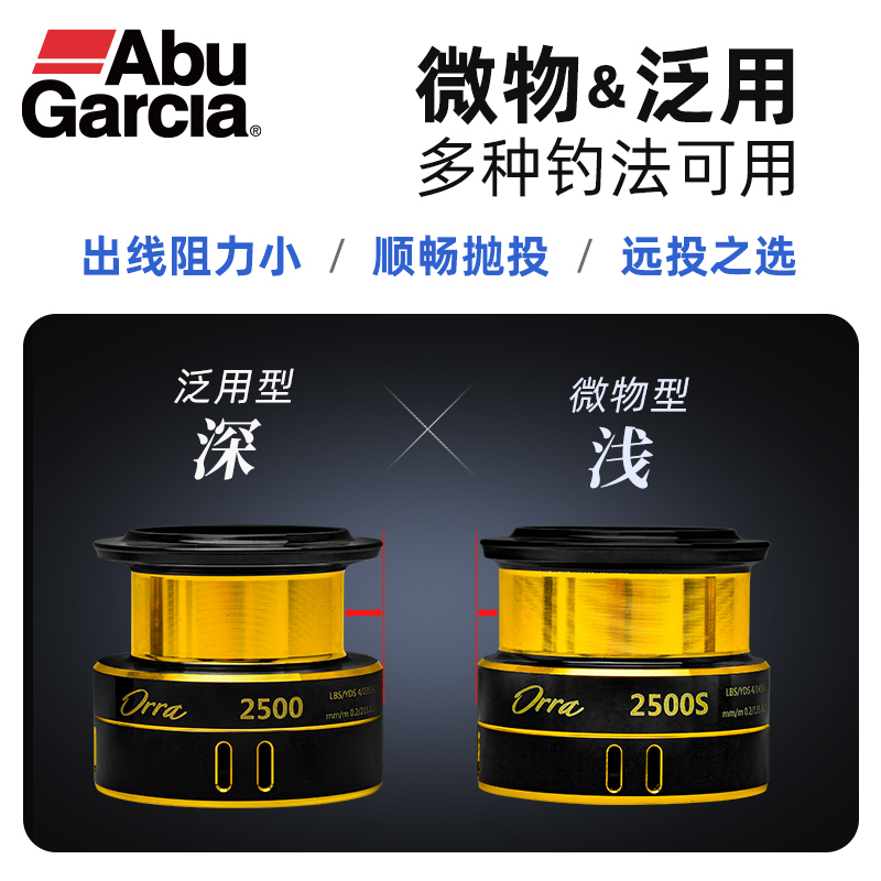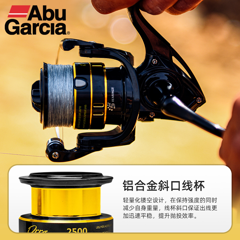 阿布奥拉纺车轮,高性价比远投纺车轮。主体采用碳纤维增强符合材质,坚固耐用。4+1颗不锈钢轴承,抛投收线顺畅。10种规格,从500-5000,适合多种作钓环境。作为路亚常用型号的2000/2500/3000型还有专门的浅线杯配置。