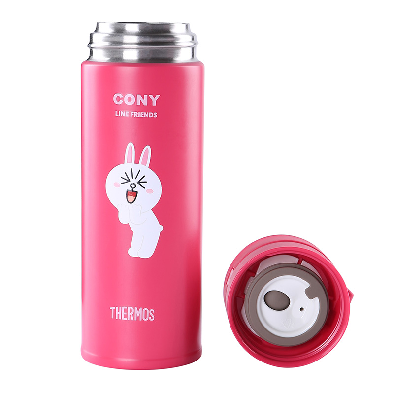 此款保温杯是膳魔师与LINE FRIENDS合作系列,有丘可、布朗熊、可妮兔、莎莉鸡四款图案,让保温杯也迎来line friends的大家庭,喝水的同时还能满足小姐姐们的少女心。这款保温杯延续了膳魔师以往的工艺品质,双层真空不锈钢杯身,长效保温保冷,一键即开杯盖,广口设计,便于灌装,杯盖可拆卸设计,日常清洗无压力,不让杯子留下污渍。容量:350ml。