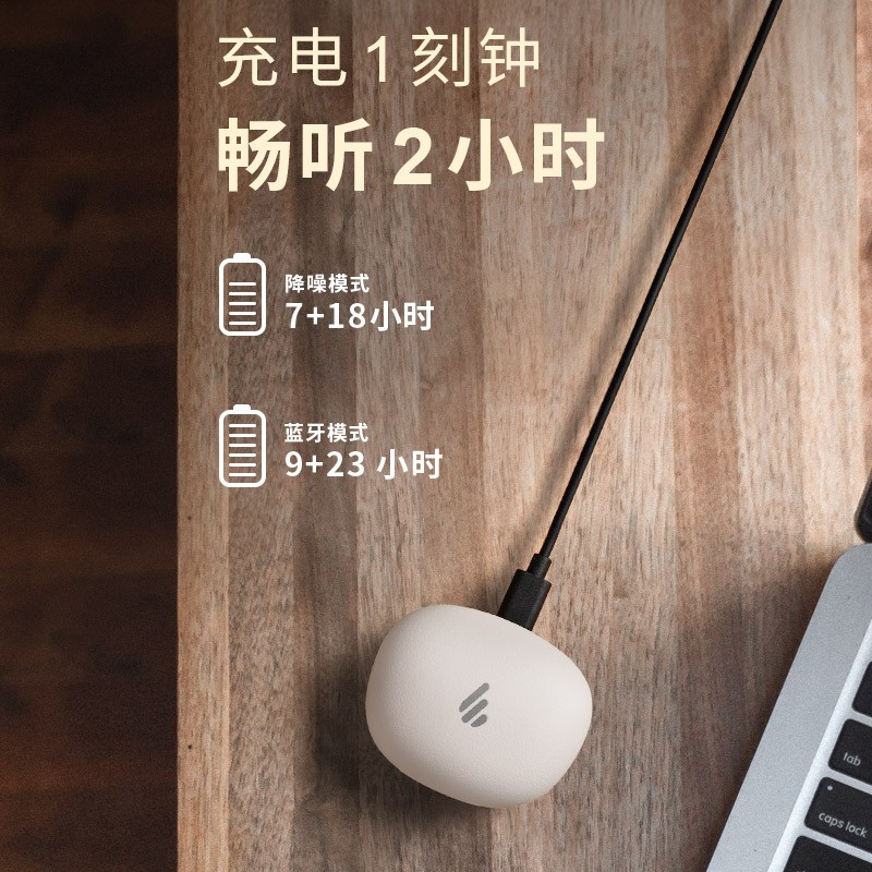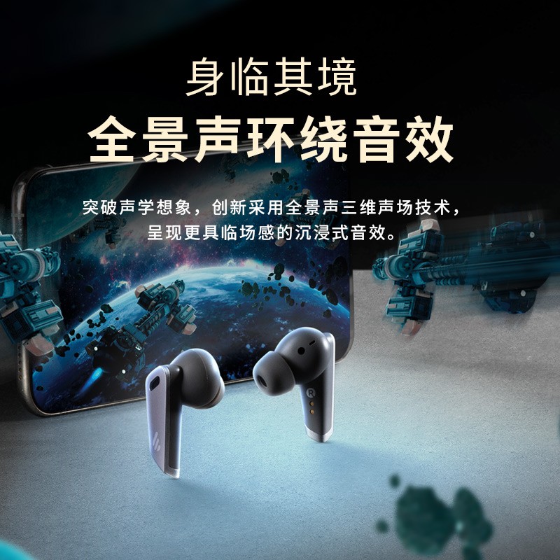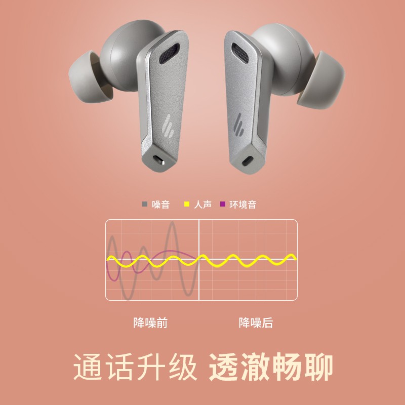 漫步者这款入耳式无线蓝牙耳机,搭载蓝牙5.0版本,延时低至100-150ms,轻松稳定连接播放设备,拥有10m的传输距离。支持ACC音频解码技术,搭配10mm复合振膜单元,呈现更多的声音细节。内置红外传感器,智能检测耳机佩戴状态,入耳播放离耳暂停。双击左耳即可触发ENC通话降噪,智能过滤周边嘈杂环境,除去通话过程中的背景噪音。三击左耳可选标准、全景声、游戏3种模式,与降噪功能自由组合搭配。