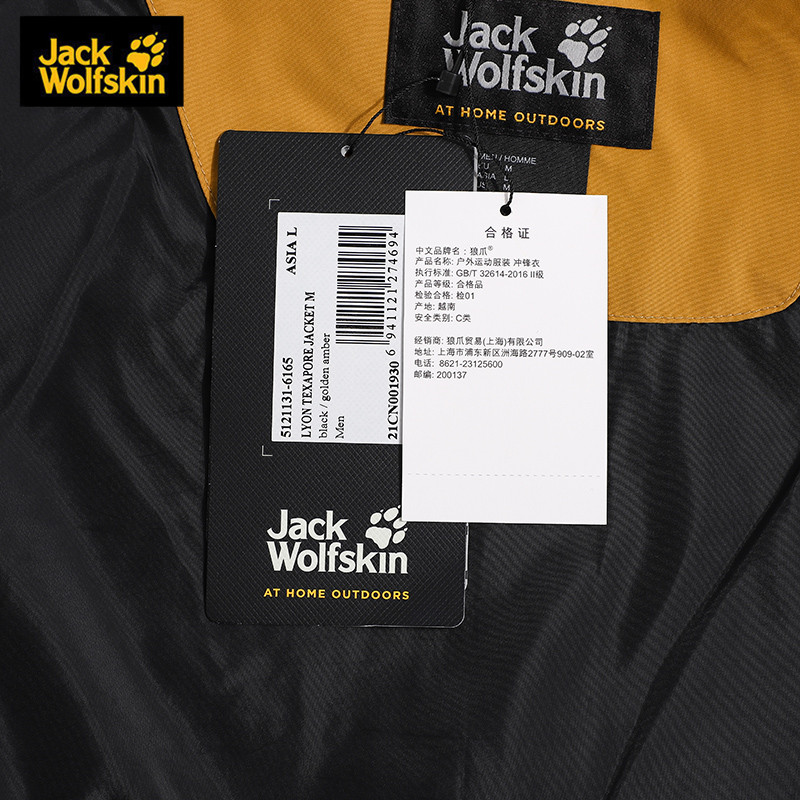 采用TEXAPORE:防水透气面料,采用防水薄膜/压胶面料,结构致密,坚固耐磨,其防水性能可以应对户外的雨雪天气。抽绳连帽,YKK金属拉链,松紧袖口设计。