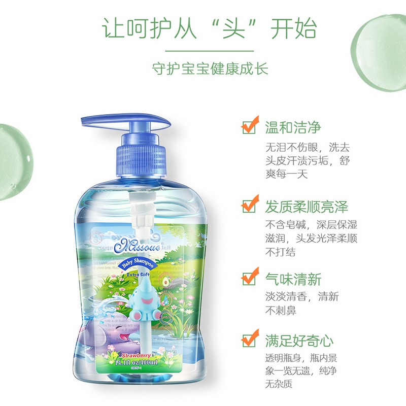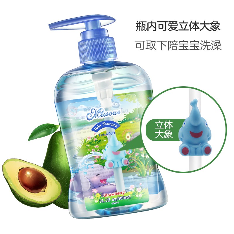 Missoue 蜜语 宝宝无硅油洗发水 400ml,植物成分,无泪配方,保湿顺滑,营养发丝,淡淡清香不刺鼻,温和洁净,舒爽每一天。吸管上的立体大象设计,增加宝宝的好奇心和认知能力,可作为玩具,增加宝宝的立体感知。