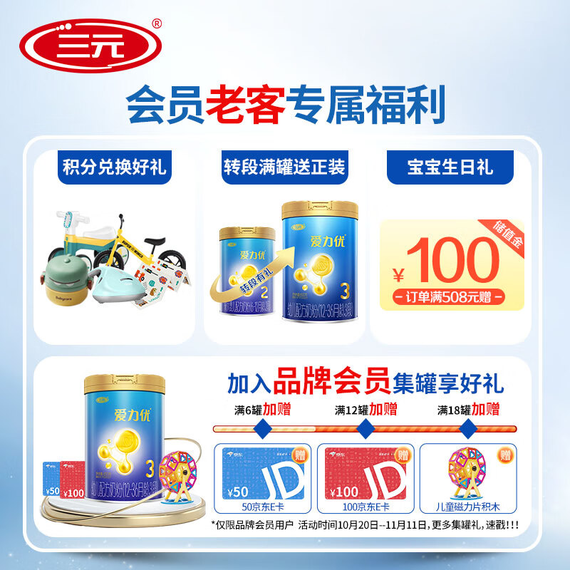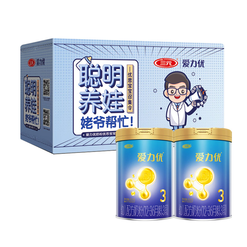 三元奶粉是北京三元食品股份有限公司旗下的奶粉系列品牌,其前身是成立于1956年的北京市牛奶总站,1968年更名为北京市牛奶公司,1997年成立北京三元食品有限公司,旗下有爱力优、恩贝益、爱诺星等系列,这款爱力优含有三重乳蛋白,a-乳清蛋白能够补充人体必备氨基酸,还有助于稳定宝宝的睡眠和情绪。MFGM乳脂球膜是神经纤维的重要成分,与DHA配合帮助宝宝大脑发育思维灵敏,乳铁蛋白帮助宝宝抵御病菌侵害,有利于宝宝提升自护力,还添加了益生元组合,可以促进肠道有益菌的生长和繁殖,维护肠道健康。