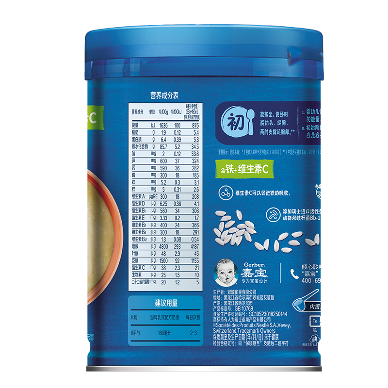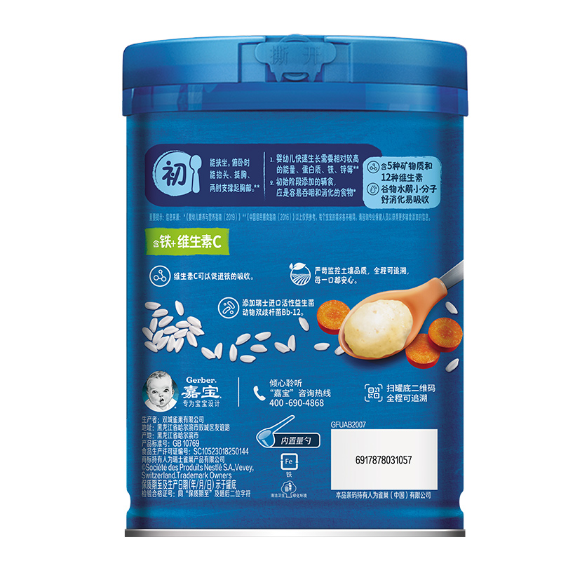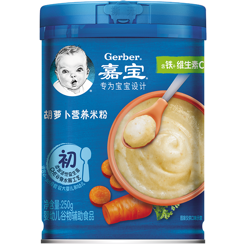 Gerber 嘉宝是美国著名的婴幼儿食品用品生产商,口碑较好这款大米粉,为非转基因食品,不添加人工色素香精等,精选优质农场,天然优质食材,无菌全自动加工生产。粉质细腻,冲泡简单。富含易吸收的二价铁,补充铁元素更高效,大分子水解成小分子,细腻米糊好吸收,专业强化铁米粉,配方设计充分考虑到宝宝一日三餐的饮食规律,妈妈无需担心米粉营养摄入不足或超标。