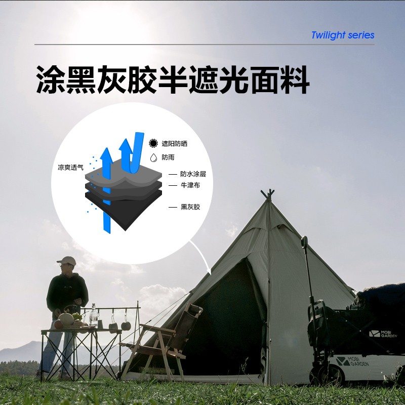 MOBIGARDEN 牧高笛 NX20561003 野外露营帐篷双层双开设计,第一层门,第二层纱门,防蚊又通风,隔热防晒,有效阻挡紫外线,帐内凉爽不闷热,露营睡到自然醒