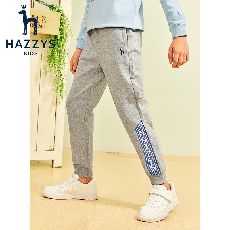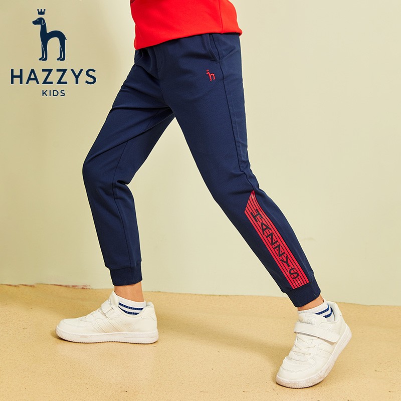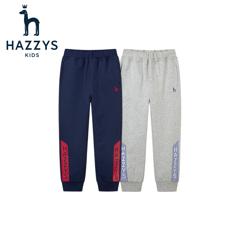 HAZZYS 哈吉斯 男童针织长裤,舒适裤腰,罗纹腰头不紧勒不松懈穿着更舒适;罗纹收口防风利落同时增添运动感;经典的线绣LOGO,展现你的简约时尚感;潮流字母印活力动感,浓浓的帅气时尚气息。