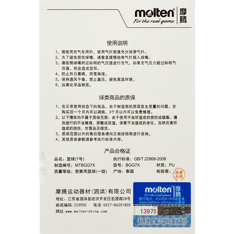 日本Molten株式会社成立于1958年,Molten的中文译名为摩腾。摩腾主要的产品囊括篮球、足球、排球、手球等竞技项目。Molten的篮球一直都是FIBA的指定用球,而相比wilson和斯伯丁的篮球,耐打可以说是Molten最为出众的优点,而算上国内的场地环境的话,那么摩腾的篮球可以说是最适合国内的外场使用。