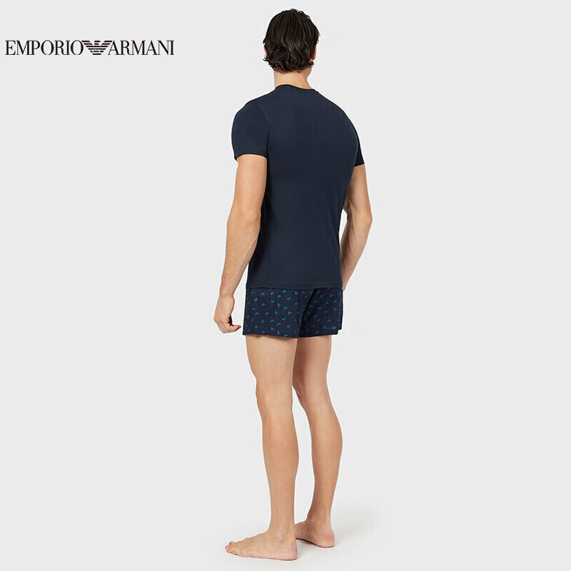 这款EMPORIO ARMANI 阿玛尼 男士鹰标棉质家居套装 111339-1P576,选用棉质面料,细腻亲肤,舒适透气。简约圆领设计,宽松版型,居家舒适。短裤采用阿罗裤版型设计,穿着方便舒适,LOGO满印装饰,层次丰富,休闲时尚。
