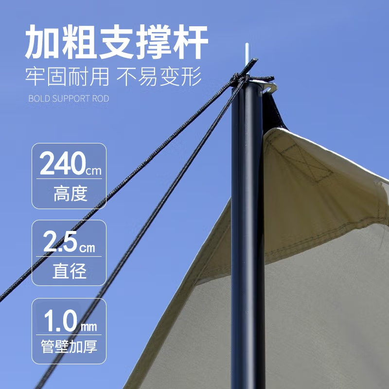 投影面积超20平米,可容纳10-20人。采用单面内挂银面料,有效防晒,无惧晒黑。加粗支撑杆,牢固耐用,不易变形。高强度金属地钉,专业防风地钉,抗4级风。专业防水,1500加密牛津布,PU3000+防水面料。简单易搭建,新手不费力。