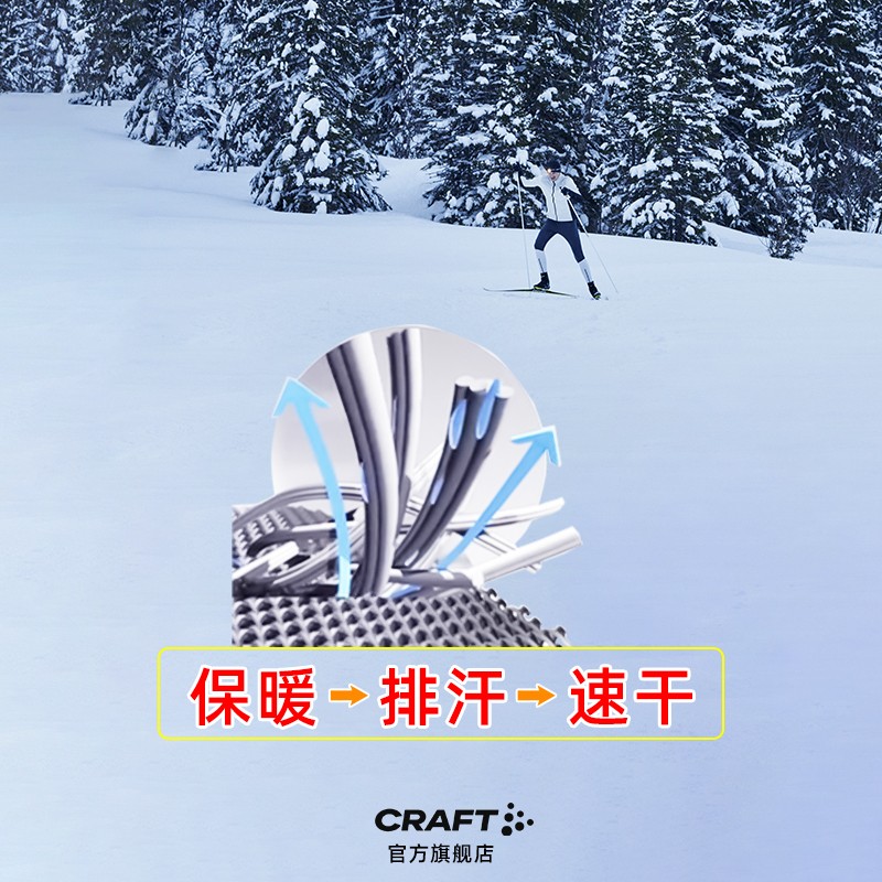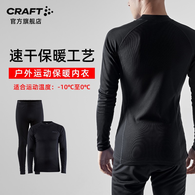 CRAFT 男子户功能衣裤套装 1909709 这是一款适合秋冬季节穿着的保暖贴身层套装。内里柔软抓绒,锁住体表空气层,轻盈温暖。功能型面料,迅速排出汗水,保持身体干爽,运动结束后不湿冷。人体工学版型,贴合身体曲线。略为加长的衣长,保护腰部,弯腰不漏风。插肩袖设计,手臂大幅运动毫无阻碍。扁形腰带,不压迫腹部,不易产生勒痕。四针六线对缝平缝工艺,牢固舒适,不磨皮肤。