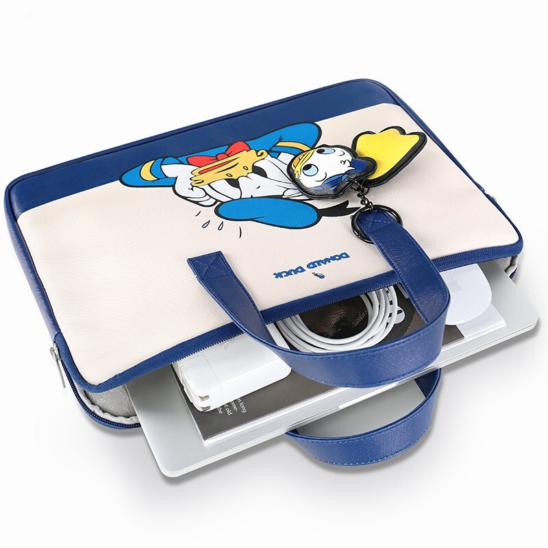 JRC14英寸手提电脑包为迪士尼正版授权电脑包,精密裁剪,全年质保,拥有多层防护。多种款式,每个包包都有专属小挂件。原始PU材质,不磨损机身,防泼水,耐磨耐刮。多种型号,兼容多种尺寸笔记本电脑。