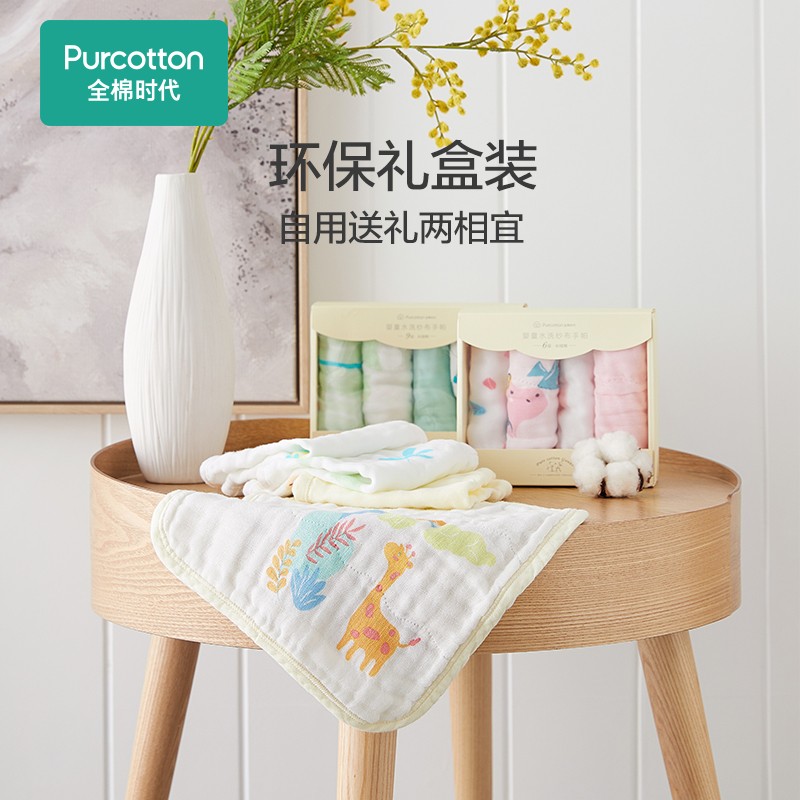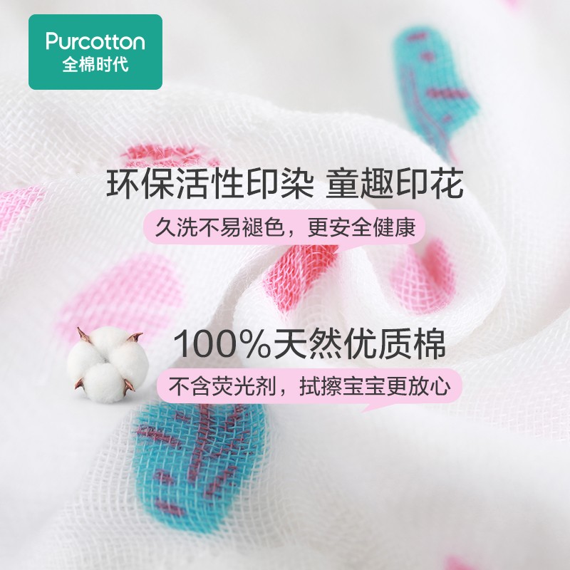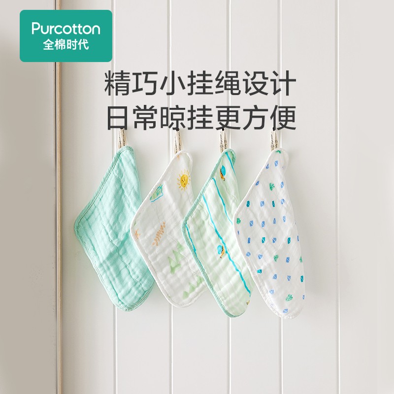 PurCotton全棉时代,取自Pure+Cotton的单词组合,意为用天然棉花生产出健康、亲肤、高品质的生活护理用品。商品采用100%进口美棉,天然无刺激,细致柔软不过敏。这款口水巾根据宝宝的使用尺寸剪裁,贴合舒适,4条装欢喜搭配更方便,透气的4层纱布,吸水迅速。