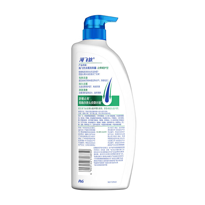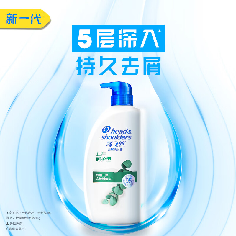 Head & Shoulders海飞丝是宝洁旗下出色的洗发护发产品,以出色的去屑能力为卖点,是世界上第一个研究出活性去屑成分的洗发水的品牌,1991年进入大陆市场后,海飞丝成为宝洁在大陆力推的洗护品牌,独有的去屑研究成果,让其成为大众洗护中的明星产品。这款洗发水有革新水溶液态去屑因子可深入毛囊,同时含有止痒呵护含桉树精华,长效去屑持久清爽。