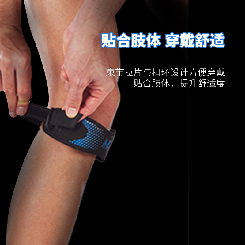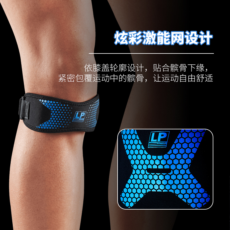 加厚髌骨垫设计,垫片针对髌骨肌腱加压,减缓髌骨运动中的不适,维持膝关节稳定,使运动更流畅舒适。高透气材质,以孔洞合成橡胶材质制作,穿戴轻松减缓整体重量,提供透气性舒适。炫彩激能网设计,依膝盖轮廓设计,贴合髌骨下缘,紧密包覆运动中的髌骨,让运动自由舒适。束带拉片与扣环设计方便穿戴,可任意自由调整束带紧度,穿戴灵活舒适。