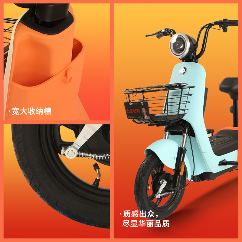 全新石墨烯应用高比能量,充分发挥石墨烯优势,全面强化电池三大组件。配备48V13AH黑金电池,可以跑得更远。全新车身设计,经典、干练。 搭配大气且有质感的色彩,让A8与众不同, 呈现出品质十足的高级感。配备400W动力电机,50KM长续航,动力澎湃释放感受酣畅淋漓的骑行体验。
