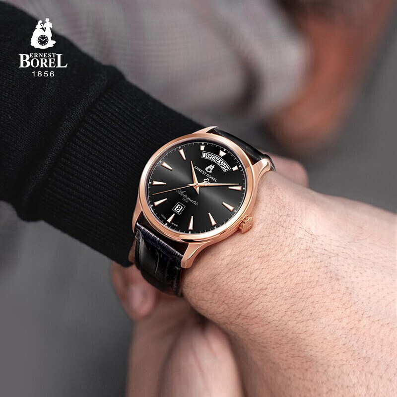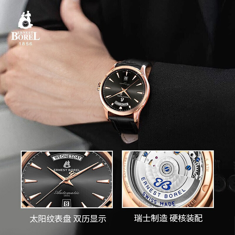 此款产品为,立体字钉双历设计,6/12时位实用双历窗,搭载夜光三角植钉。瑞士制造硬核装配,考究可透视背盖,搭载瑞士机械自动机芯。50米防水深度,42mm表径,蓝宝石水晶玻璃。