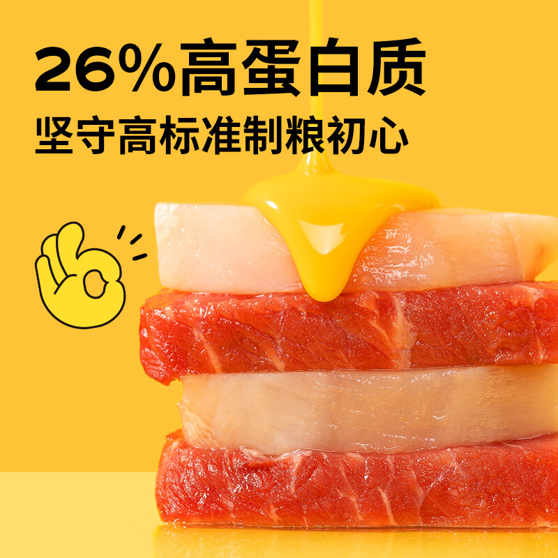 肉粒全新满级,真牛肉真食材,给狗狗吃的绝不糊弄,每口独有肉粒,肉粒狗狗大满足。丰富蛋白质、氨基酸等,提供高蛋白质营养等。