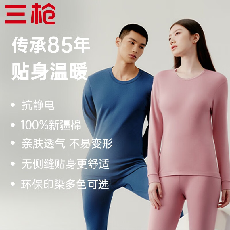 THREEGUN 三枪 男女款保暖内衣套装 1823530D0,手感软糯亲肤,穿着透气不闷热,成品弹力测试,拉伸后迅速恢复,洗涤、久穿不易变形。弹力袖口,舒适服帖。舒适腰头,优越弹力。