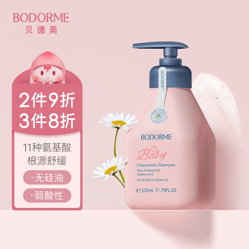 bodcrme 贝德美 儿童蓝甘菊洗发露 335ml天然萃取蔓荆、龙胆和何首乌,从根源舒缓头皮的各种状况,温和不刺激,安心守护头皮。精选11种亲和人体的氨基酸成分,温和清洁,有效减少头皮负担,修护受损干枯发质,令宝宝发丝水润有活力。