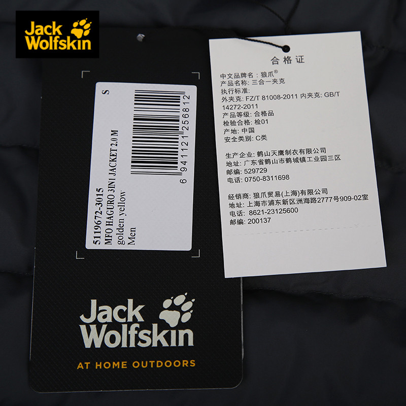 Jack Wolfskin 狼爪 5119672 男款羽绒内胆三合一冲锋衣,外套采用TEXAPORE科技,防风防水透气,可脱卸风帽,实用方便,鹅绒内胆,550蓬,可根据出行需求组合穿着。