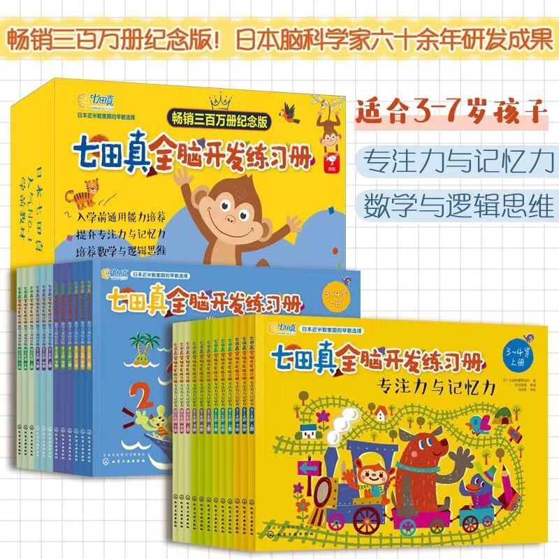 这套全脑开发是日本七田教育研究所历经60年研发修订完善而成,内容根据孩子在进入小学前应知和掌握的十大基础认知:颜色、形状、大小、数、量、空间、比较、顺序、时间、钱币通过趣味的内容,从专注力和记忆力两个方面帮助孩子分阶段提升,以科学的编排体系,构建左右脑的链接回路,由浅入深,构造有序的帮助孩子左右脑均衡发展,同时激发孩子的学习兴趣。对同一类题型做四次针对性的练习,帮助孩子们真正掌握所学,达到400%的练习效果。