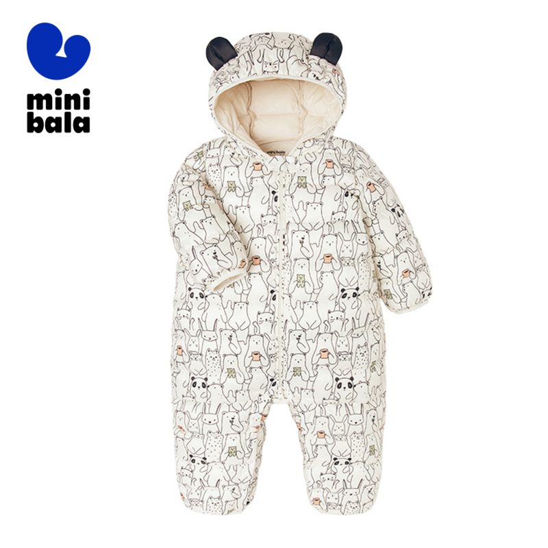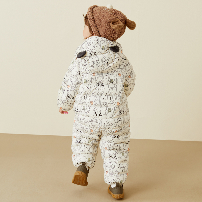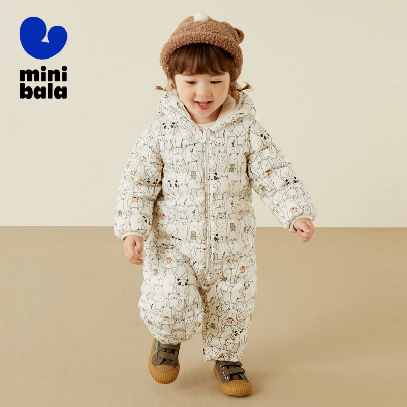 mini balabala 迷你巴拉巴拉 秋冬羽绒连体衣,舒适升级,帽子充绒,保暖升级。浅色也耐脏,升级三防面料,防水防油防污,打理省心。90%含绒量,22道+净味处理,6重锁绒工艺,羽绒不跑,舒暖好穿。版型设计,轻松穿脱,双向拉链+按扣,摊开穿更方便。