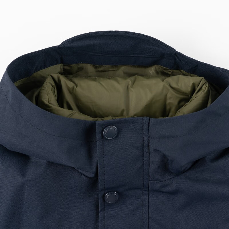 一衣三穿,可作防风风衣单穿,可单穿羽绒内件,也可两件组合叠穿,适合多种场景,防泼水防油污面料,更易清洁,连帽设计防风效果好。