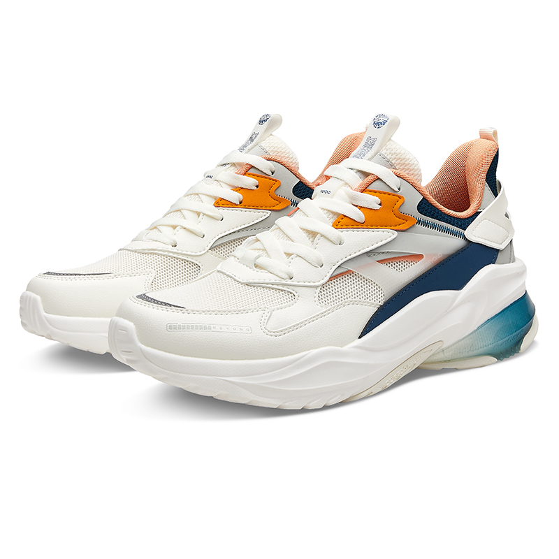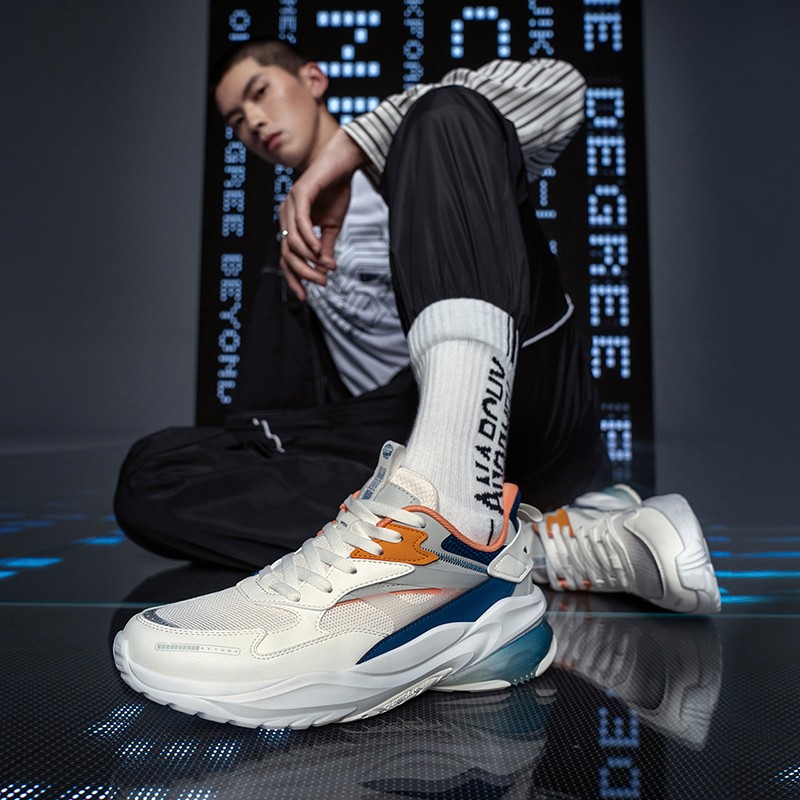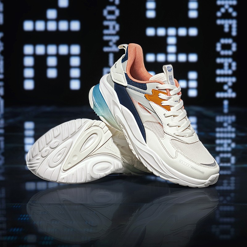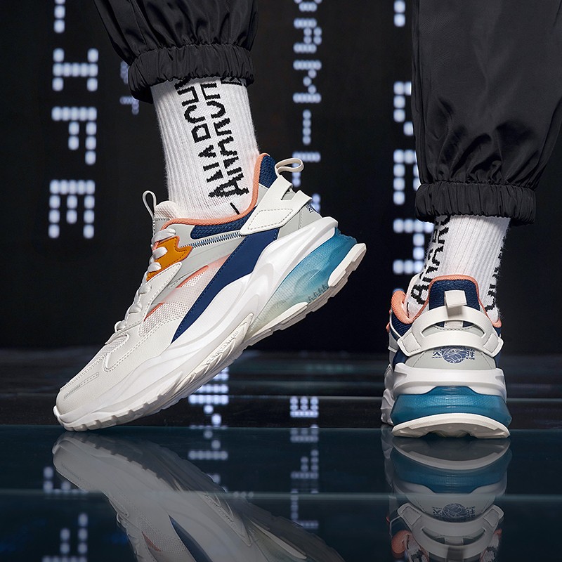361° 灵眸2.0Plus 672116789 男士休闲老爹鞋,45°±2°柔软回弹舒适缓震,利落线条凸显恣意格调。革网拼接舒适包裹,用潮酷老爹风装点慵懒时光。TPU饰片彰显品质感,3M反光饰片玩味时尚。抓地防滑肆意畅想,展露潮流魅力。鞋头零感针织面料融合提升窝折度,减少趾头挤压不适感;侧墙大面元素印刷搭配丰富的层次结构与撞色拼接设计,烘托鞋款设计感。