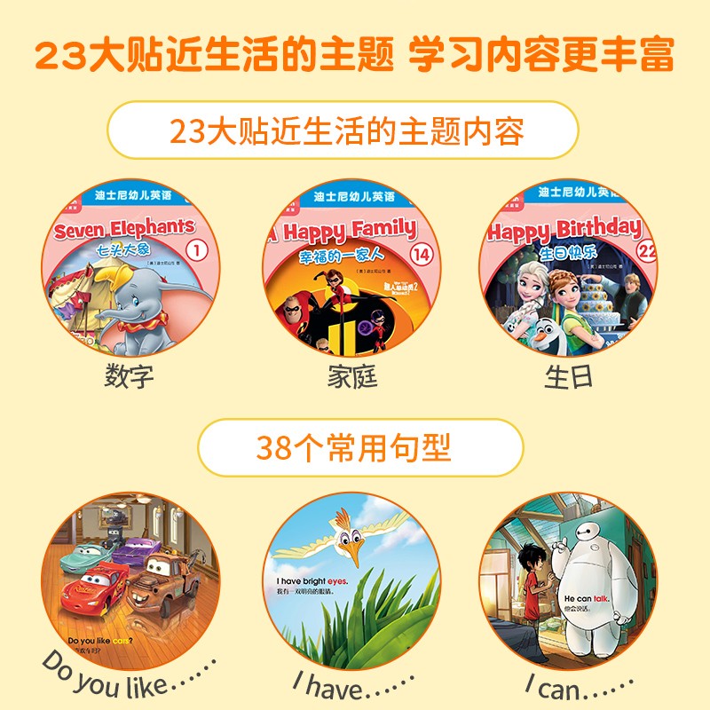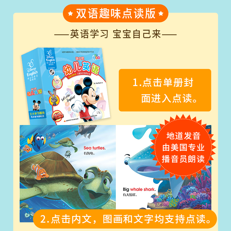 这是一套为低年龄段英语零基础的儿童开发的一套英语读物。30个英文十分简短的迪士尼经典故事,囊括了日常生活中经常使用的关键词汇和短语。书中有很多深受孩子喜爱的迪士尼形象:《冰雪奇缘》的艾莎和安娜,《疯狂动物城》的朱迪和尼克、小公主苏菲亚……