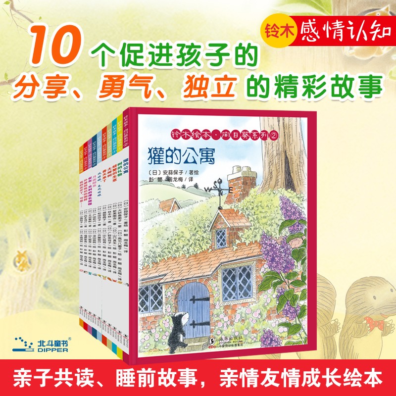 铃木系列的绘本是精选了日本绘本名家代表作品的绘本系列产品,绘本面向的多是7岁以下的孩子,画风清新细腻,以温暖向上的主题而受到家长的欢迎。这套向日葵系列绘本套装共有10册,汇集了日本著名的绘本画家户田和代、泽田俊树、新美南吉、山口真生等人的作品,故事以亲情、友情、成长、勇气和爱为主,培养孩子向日葵般积极向上的性格。绘本采用环保大豆油墨印刷、圆角设计,在宝宝翻阅的过程中可也以保护稚嫩的小手不被割伤。