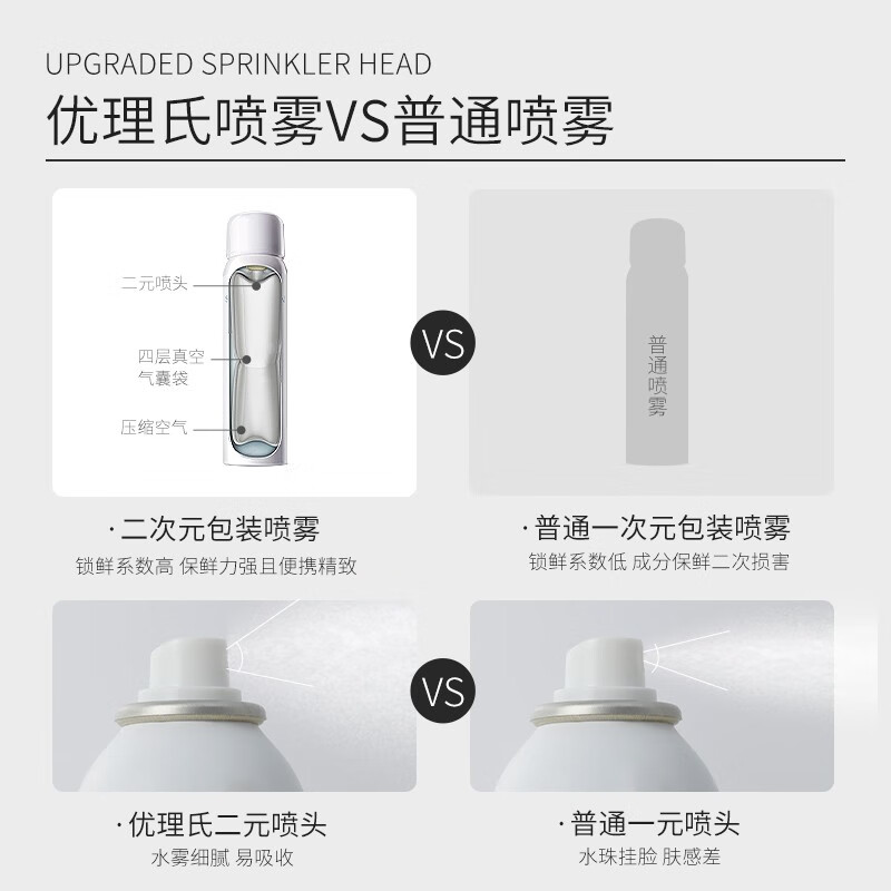 优理氏补水喷雾,快速渗透,深层补水,双重植物精华有很好的的温和舒敏效果。快速渗透补水舒缓NANO水解玻尿酸-深层补水,双重植物精华-温和舒敏,一喷秒补水,直击肌底干燥,一拍即舒缓,解救燥热敏感肌。