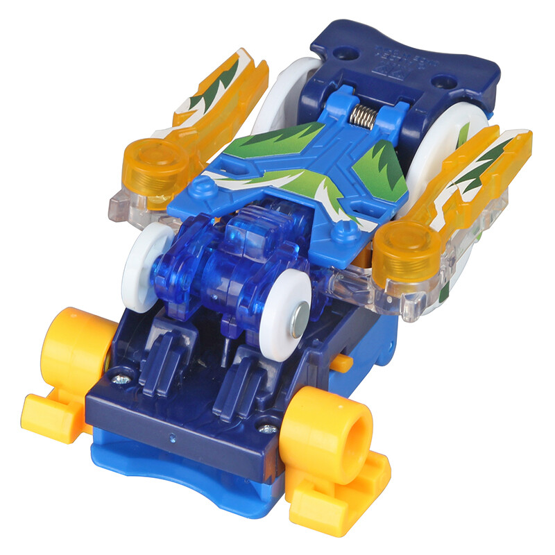 本款新型爆裂飞车特点在于,体积小便于放入口袋,双弹板设计让赛车可以多完成一次180°空翻跳跃,还能和其他弹射系列完成组合;不玩的时候可以变成神兽形态,当作一个不错的小摆件~产品规格205*104*85mm,适合8岁以上的小朋友玩耍。