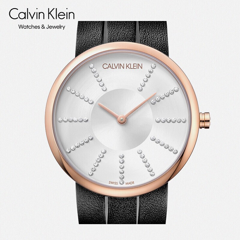 Calvin Klein 卡尔文·克莱 罗马鞋系列 女士石英腕表 K2R2MTCX,11个时标刻度镶嵌人造水晶,每刻度6颗共66颗,美好寓意释放耀眼光芒。细皮革表带缠绕交错与腕间,线条灵动挺廓。人工合成蓝宝石水晶玻璃表镜,硬度高耐磨耐刮清晰透亮。