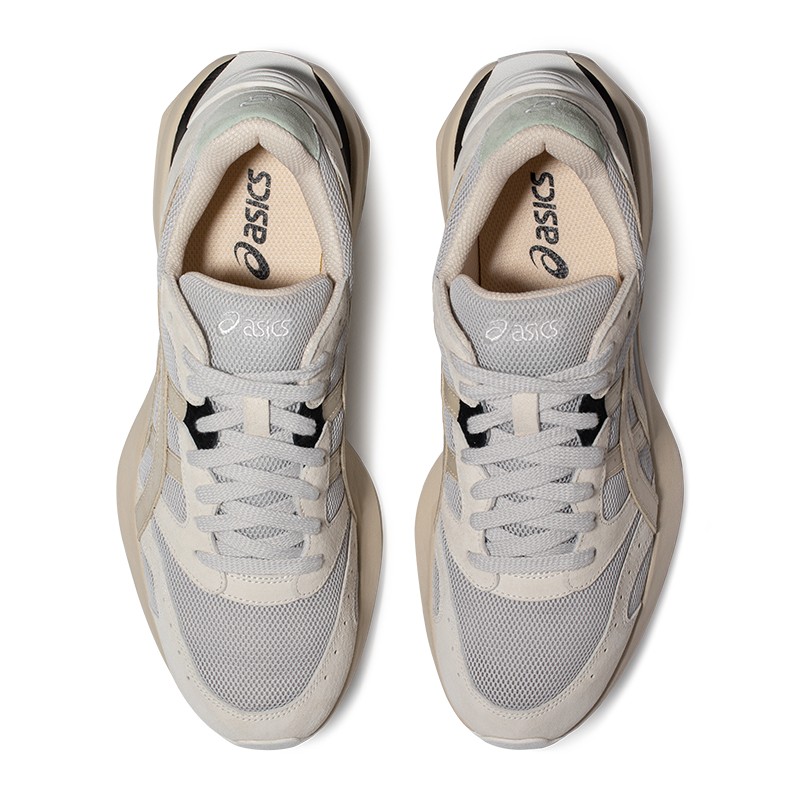 后跟处增加橡胶补强,提高步伐稳定性。其形状灵感源于日本飞鸟时代五重塔顶部轮廓,让跑鞋富有建筑艺术美感。橡胶补强横纹压痕设计灵感源于日式盔甲代表之一的大铠,大臂上因革甲片铁甲片互相叠加而构成的线条是英武且坚毅象征。采用与运动跑鞋相同的EVA科技中底,提升了鞋款的轻量性及柔软度。可拆卸鞋垫注入活性炭成分,能够有效吸湿排汗,祛除异味。后跟处3cm厚底增高,配合复古拼色设计,打造出众层次感,修饰腿部线条,多种搭配风格无拘畅享。