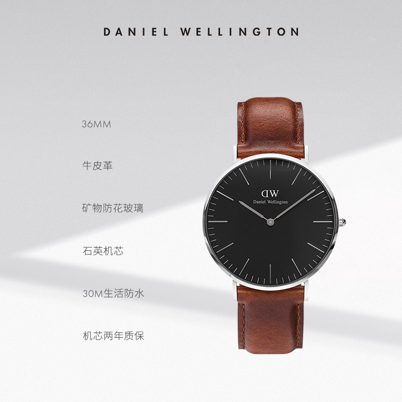 Daniel Wellington 丹尼尔惠灵顿 男士石英手表 DW00100142 不易过时的颜色,铸就个性腕饰,在时尚人群的衣橱之中演绎百变风格。6毫米纤薄表盘,生活性防水。