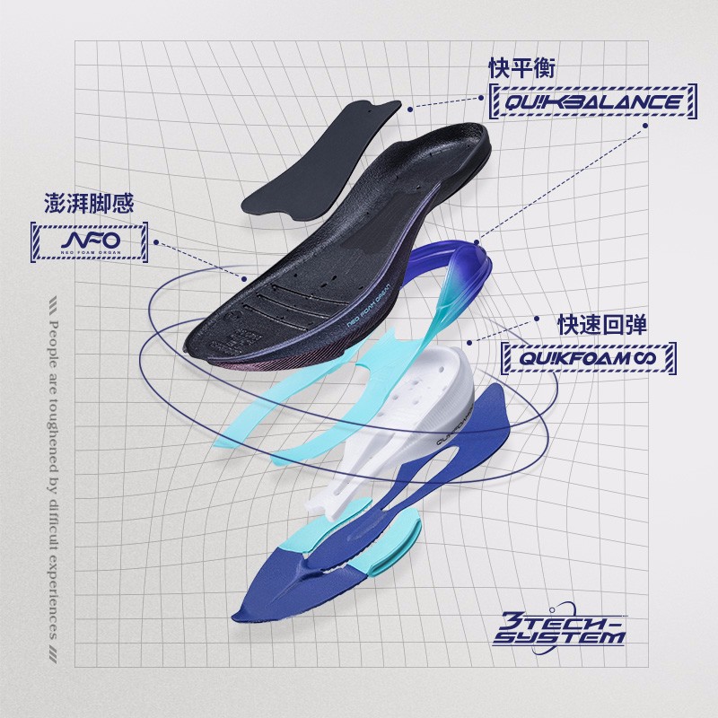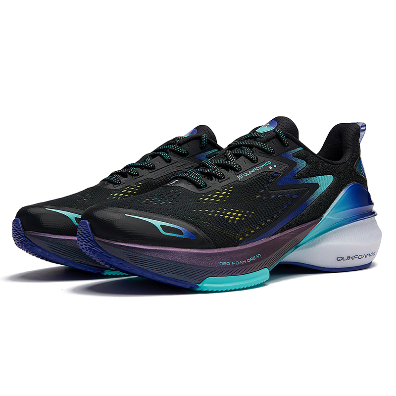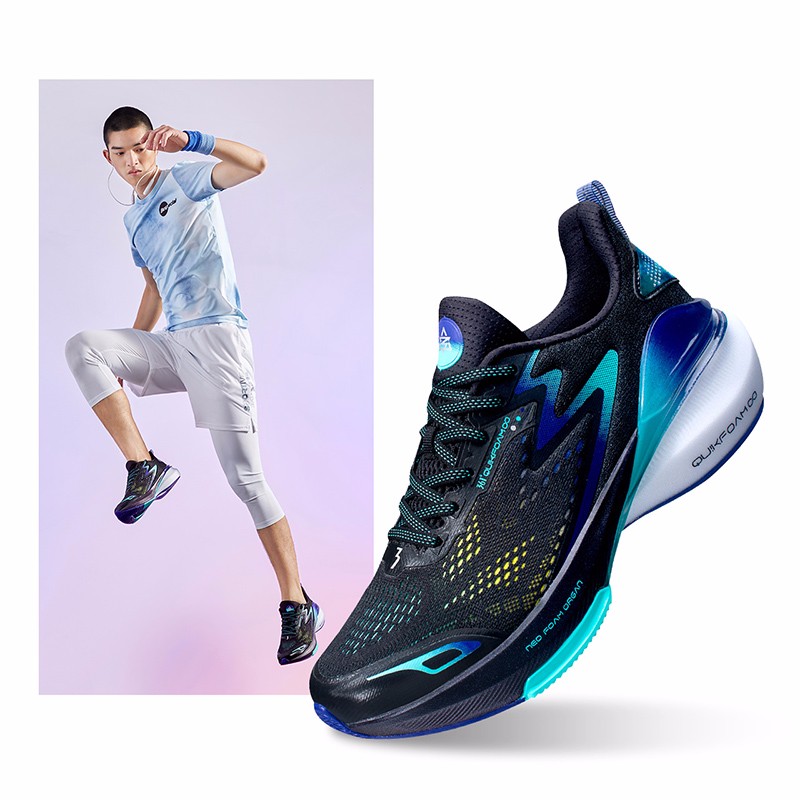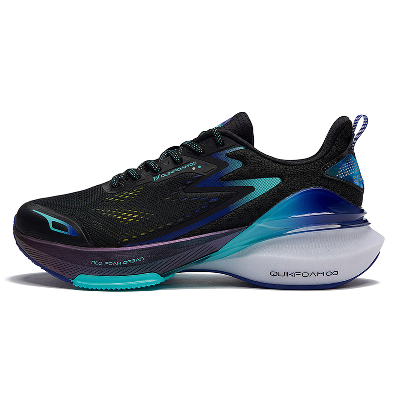 此款361° 三体联名款 三态 男子跑鞋,鞋面采用贾卡工程网布设计透气排汗性能突出,前掌NFO材质,经典海鸥线结构触地柔软,澎湃缓震,后掌口弹超材质,柔韧厚底渐进释力提供充实的能量回弹缓震支撑,中层衔接处搭载结构感尼龙板支撑片,强力提升大底支撑效果减少侧翻风险,外底橡胶贴片搭配底花纹理关键部位锯齿状橡胶,增加抓地耐磨性能,后跟拼接针织面料轻薄贴合兼顾双足包裹舒适感。